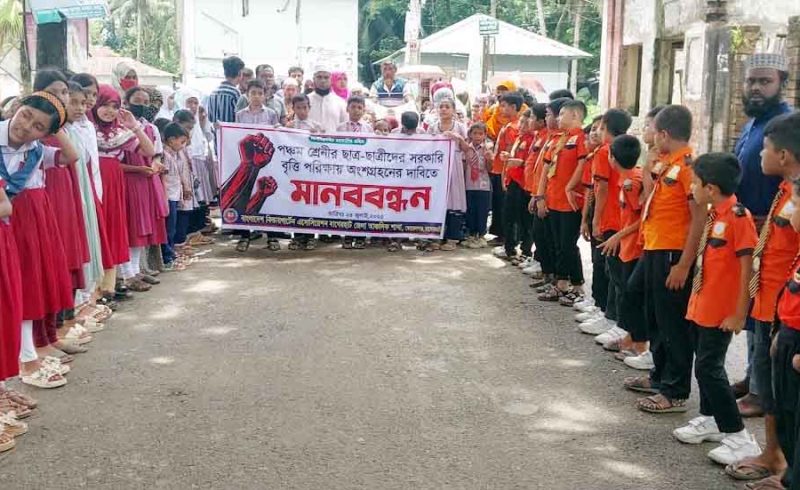 সিড়র ডেস্ক বাগেরহাটের মোরেলগঞ্জে কিন্ডারগার্টেন স্কুলের ৫ম শ্রেনীর ছাত্র-ছাত্রীদের সরকারি বৃত্তি পরীক্ষায় অংশ গ্রহনের দাবিতে মানববন্ধন কর্মসূচি পালিত হয়েছে।বৃহস্পতিবার (২৪ জুলাই) দুপুরে উপজেলা পরিষদ প্রশাসনিক চত্বরে এলাকায় মোরেলগঞ্জ উপজেলার বিভিন্ন